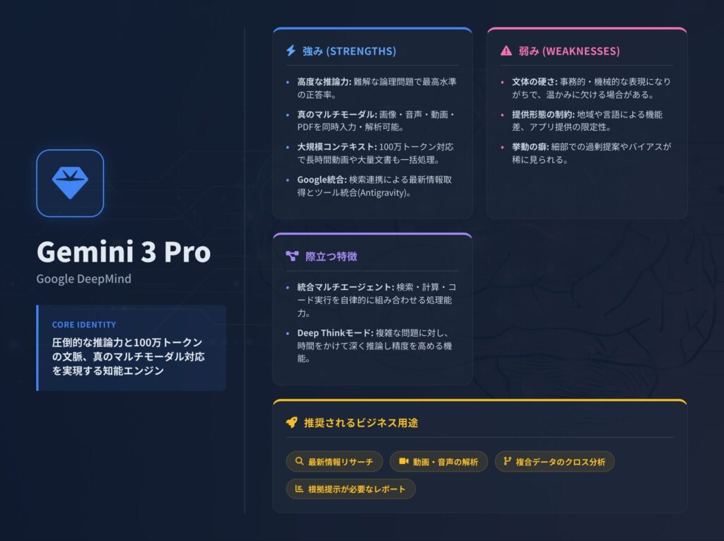 また、Gemini 3からは、音声、画像、動画、PDFなど様々な形式のデータを読み込ませることのできる「マルチモーダル化」ができるようになった点が、利便性の大幅な向上につながったように思います。だからこそ、100万トークンもの大量データを読み込める性能の真価が発揮できるとも言えます。