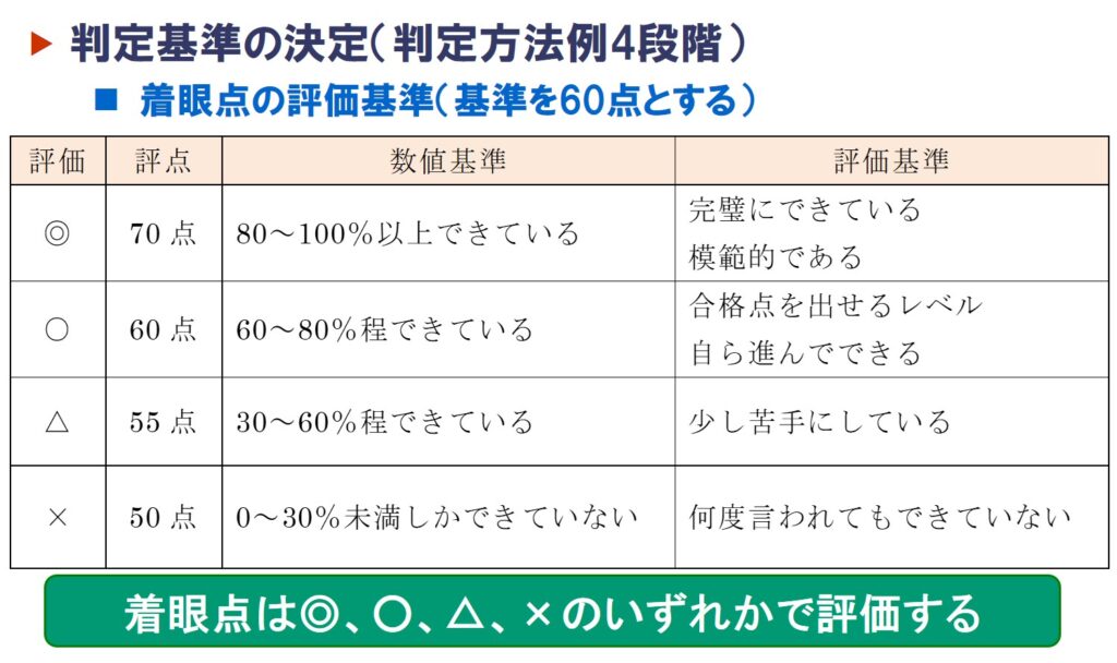 行動評価は、前回ご紹介した 着眼点単位 で判定します。