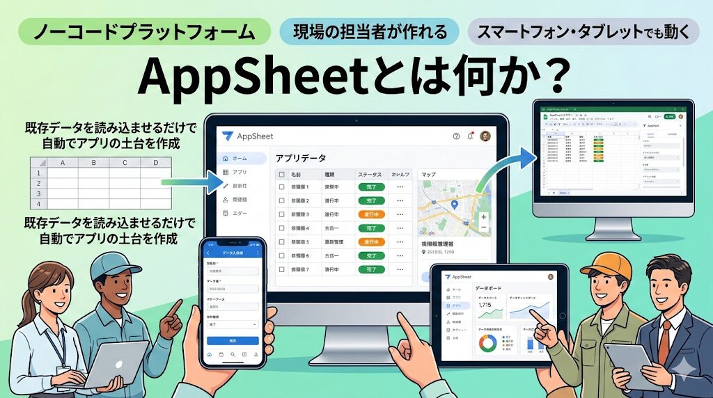AppSheetは、コードを書かずに社内向けの業務アプリを作れるノーコードプラットフォームです。